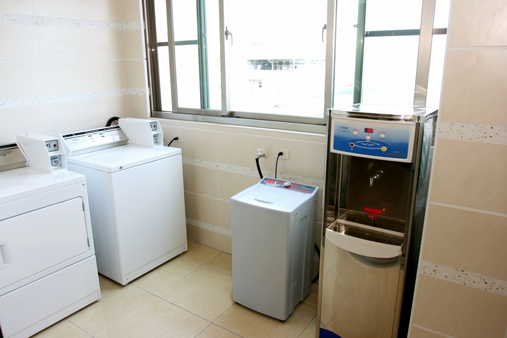 14. 洗衣間備有投幣式洗烘衣機、免費脫水機、飲水機