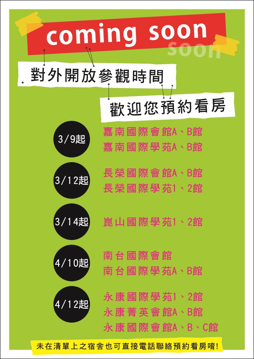 快來!快來!我們即將對外開放預約新學期房宿囉!