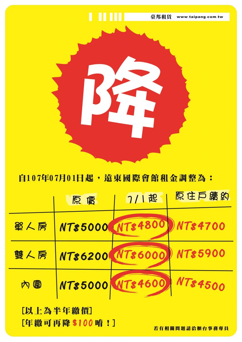 好康優惠 - 遠東國際會館7/1起租金降價囉!