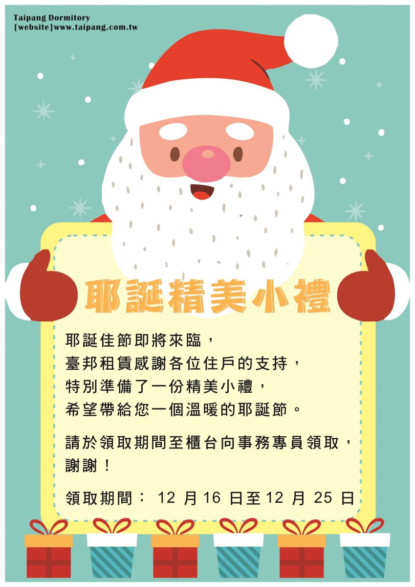 凡是住在成大國際會館、永大市、崑山國際學苑1、2館、南台國際會館、南台國際學苑A、B館、致遠國際學苑、致遠國際會館、南榮國際會館、朝琴精英會館、樹德國際學苑、臺邦書香院、中華國際會館等住戶,皆可獲得臺邦租賃精心為您準備的精美小禮,