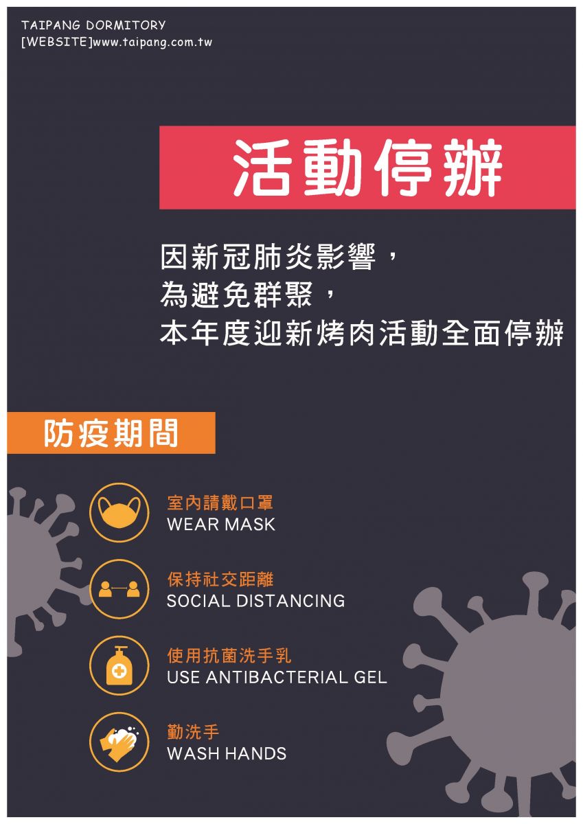 因新冠肺炎影響,活動停辦通知