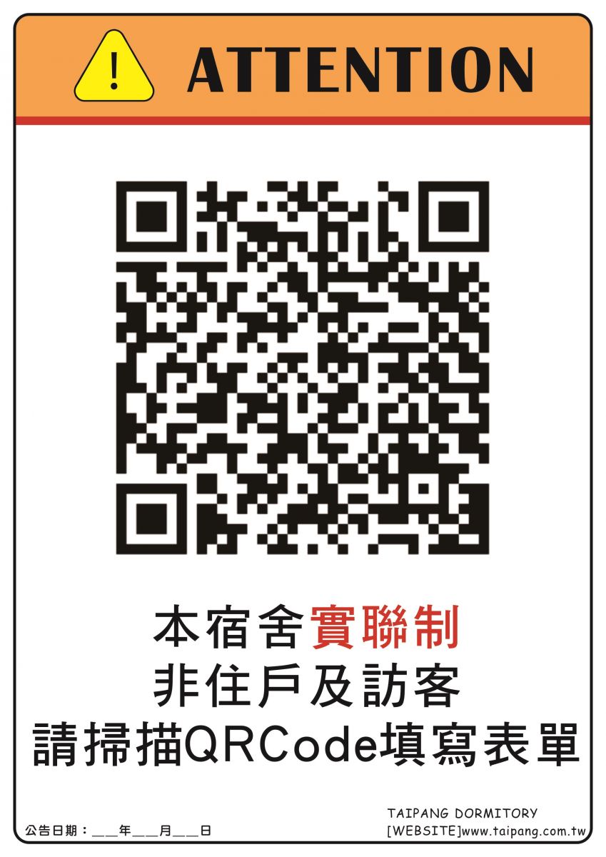 為配合防疫,本公司所有宿舍出入口採實聯制進入,敬請配合入內全程配戴口罩並使用酒精消毒!